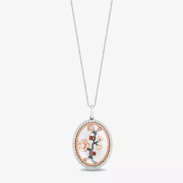 Enchanted Disney Fine Jewelry Womens 1/10 CT. T.W. Genuine White Mother Of Pearl 14K Rose Gold Over Silver 18 Inch Pendant Necklace