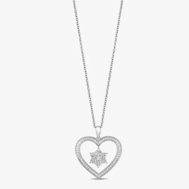 Enchanted Disney Fine Jewelry Womens 1/5 CT. Natural White Diamond Sterling Silver Heart 17 Inch Pendant Necklace