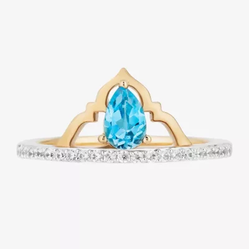 Enchanted Disney Fine Jewelry Womens 1/6 CT. T.W. Genuine Blue Topaz 14K Gold Over Silver Crown Aladdin Jasmine Cocktail Ring in Franklin, TN