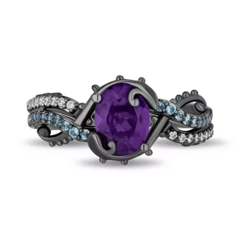 Ring Style: Crossover Rings, Multi Diamond Rings, Twist Rings, Cocktail Rings, Solitaire Rings, Side Stone Rings Character: Ursula, the Little Mermaid Diamond Clarity: I2-I3 Setting: Prong Stone Cut: Oval Stone Millimeter Measurement: 8 Mm Length, 6 Mm Width Diamond Color: I-J Metal Color: White Ring Gallery Height: 6mm Rounded Carat Weight: 1/10 Ct. T.w. Band Width: <2mm Stone Type: 1 Genuine Amethyst, 18 Natural Diamond, 20 Genuine Blue Topaz Authenticity: Lab Created Stone Birthstone: February Birthstone Metal: Sterling Silver Country of Origin: Imported 21 Clarity rating: IJ I2I3 Polished finish Prong setting Imported Product Specifications 6mmX2mm, 6mm 1.056 Material Metal, Sterling silver