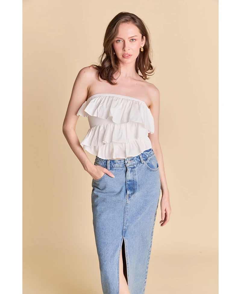 endless rose Women's Mixed Media Ruffled Strapless Top in Franklin, TN