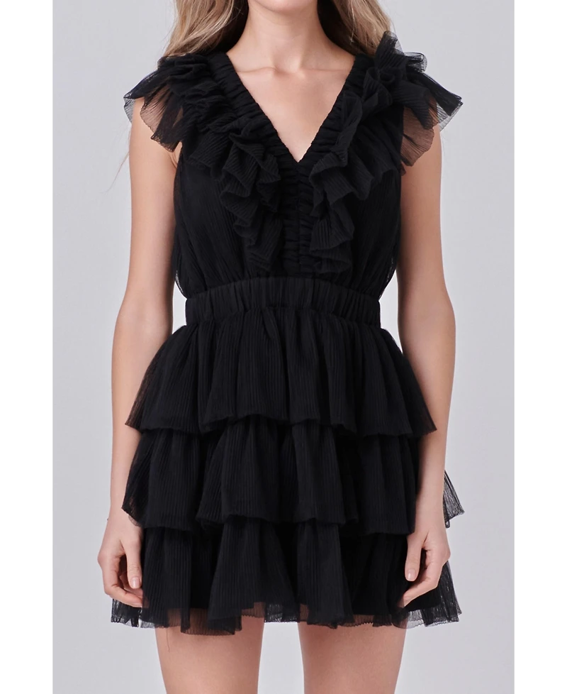 endless rose Women's Tulle Ruffle Tiered Mini Dress