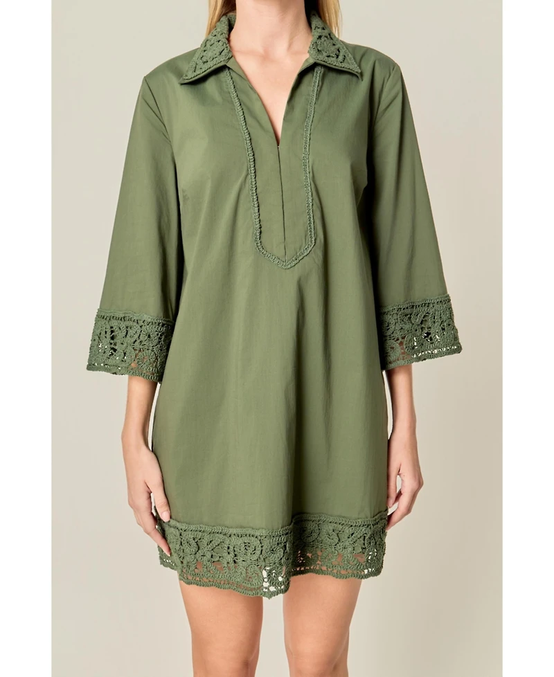 English Factory Women's Crochet Accent Mini Dress