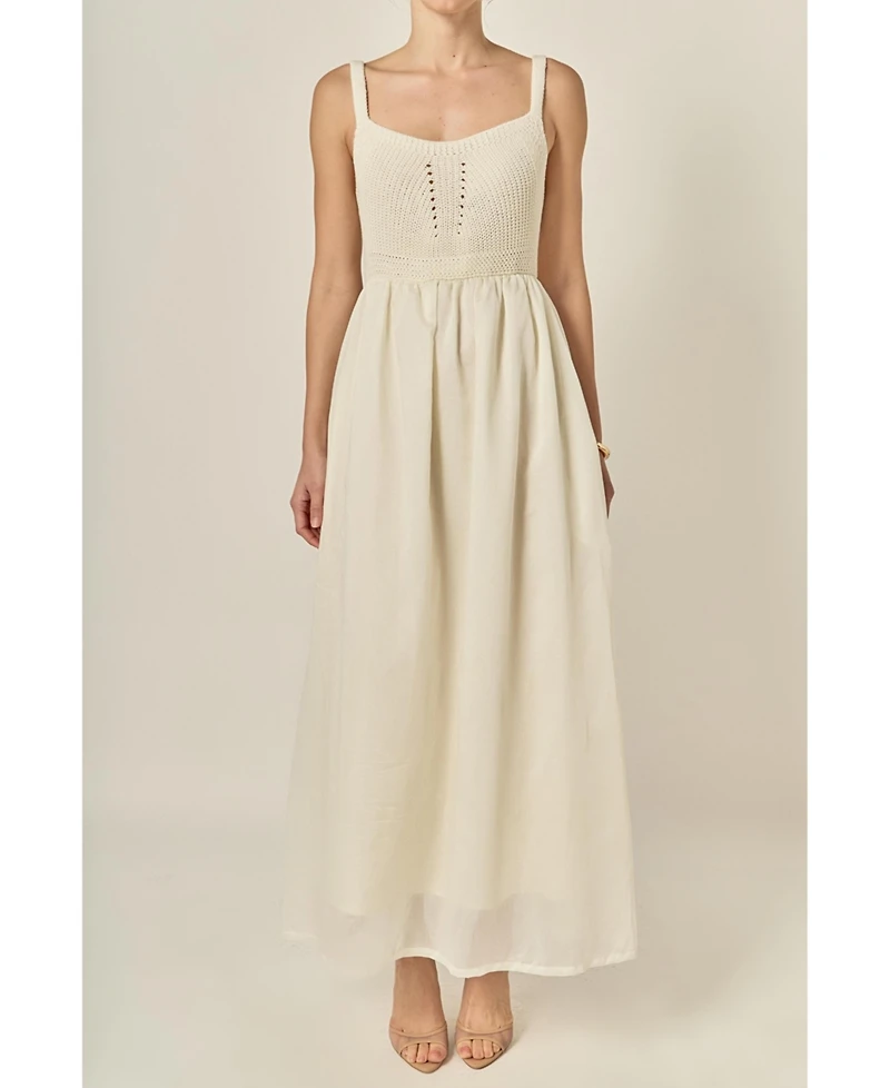 English Factory Women's Mixed Media Sleeveless Midi Dress