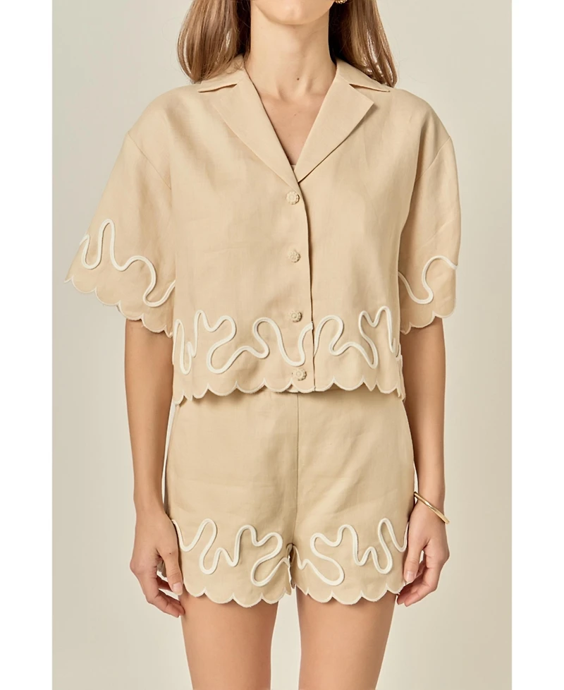 English Factory Women's Wavy Embroidered Crop Shirt