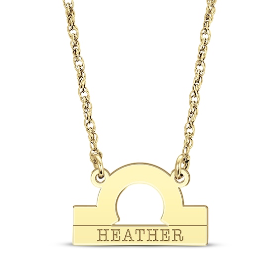 Engravable "Libra" Zodiac Sign Necklace 10K Yellow Gold 18"