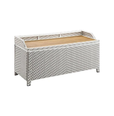 Create a stylish, modern sitting area on a porch or in a sunroom with this charming indoor and outdoor three-piece table and chair set. Modern silhouettes and finishes elevate the look, which boasts a glass topped table and two gray woven wicker chairs. Chairs feature a low profile for a relaxed and inviting setup. The round table offers a glass top and splayed aluminum legs and is perfectly sized for morning coffee or an evening nightcap.