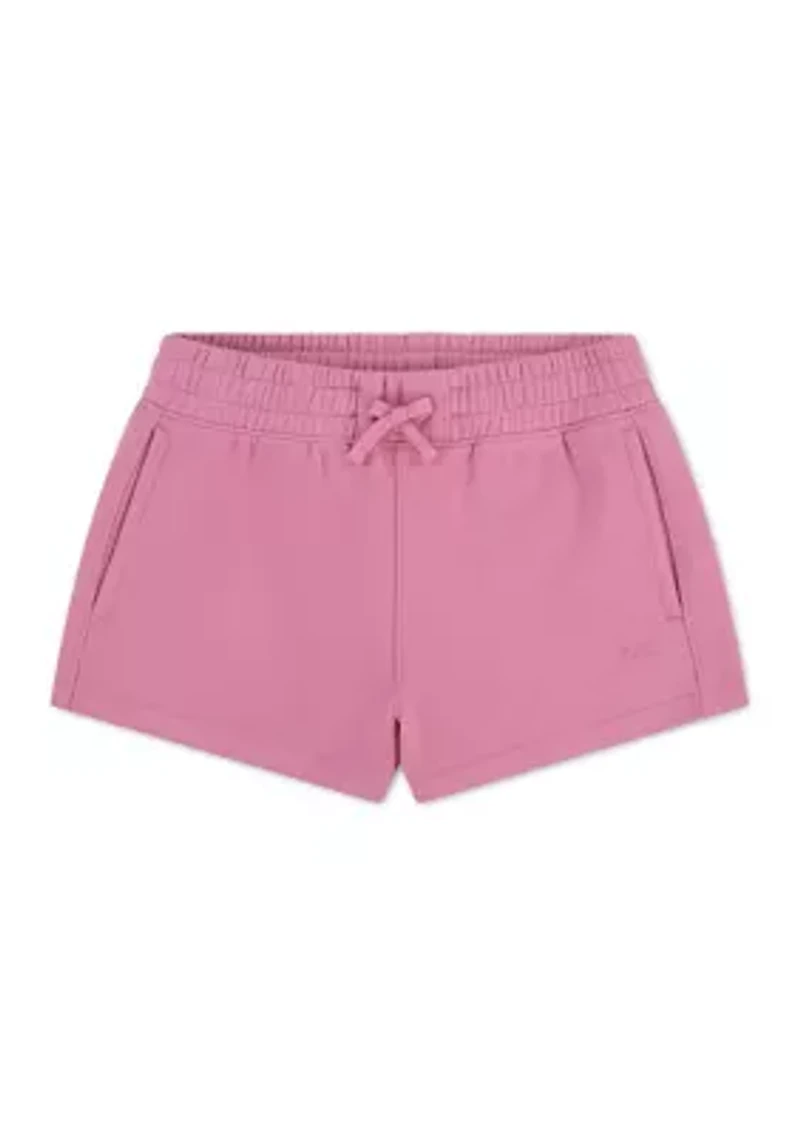 Made from a soft fleece fabric, these high-rise shorts from abercrombie kids are designed with a drawstring elastic waistband, practical slant pockets and embroidered A&F logo branding near the hem. Elastic waistband with drawstring Imported Product Specifications Mid-thigh length Material & Care Cotton, polyester Machine washable