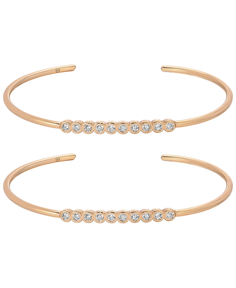 The Double Take Crystal Cuff Set features two sleek, slim bracelets, each adorned with a delicate line of sparkling crystals. Perfect for layering or wearing alone for a subtle, elegant shimmer.