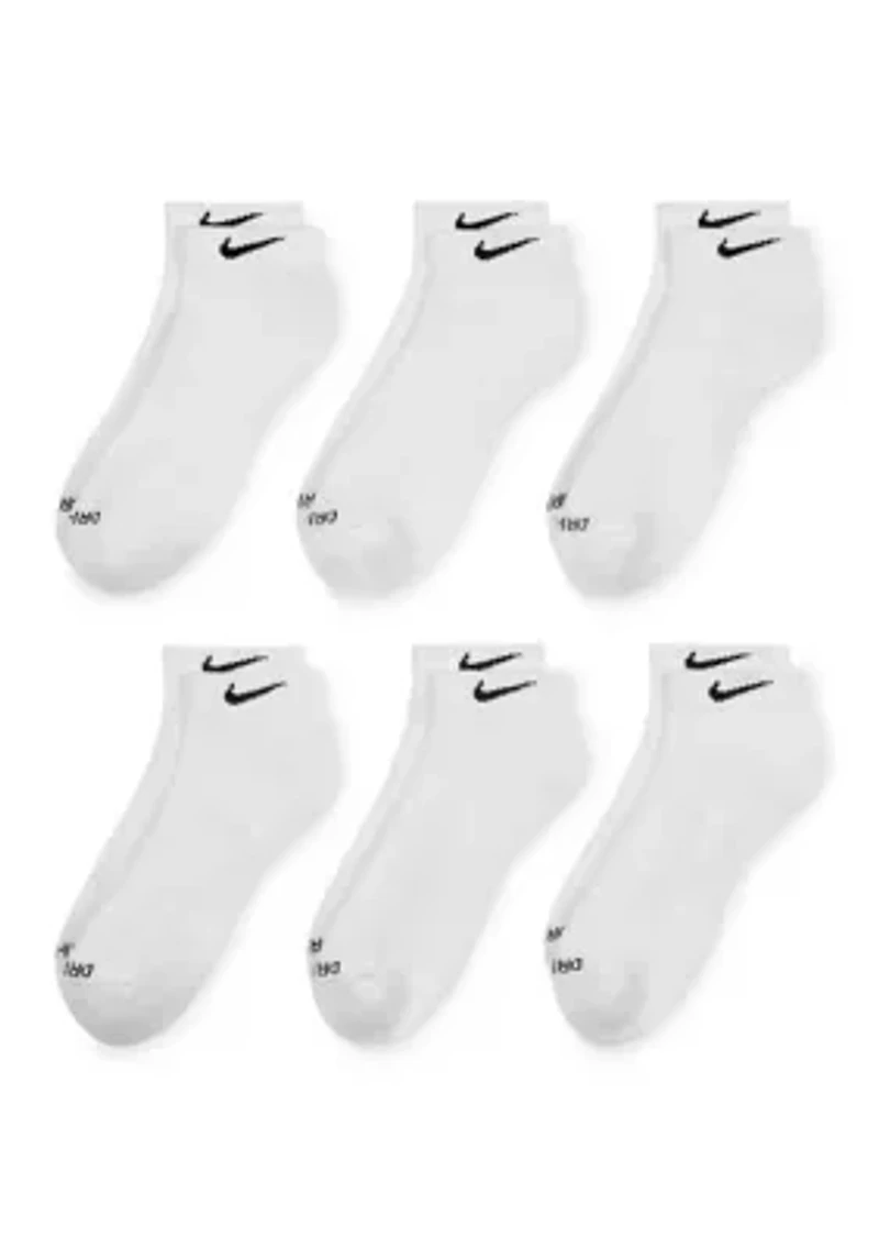 These Nike® Everyday Plus Cushioned Socks bring comfort to your workout with extra cushioning under the heel and forefoot and a snug, supportive arch band. Sweat-wicking power and breathability up top help keep your feet dry and cool to help push you through that extra set. Cushioning under the forefoot and heel helps soften the impact of your workout. Dri-FIT technology helps your feet stay dry and comfortable. The band around the arch feels snug and supportive, while the breathable knit pattern on top adds ventilation. The reinforced heels and toes are made to last. Set of 6 Imported Material & Care Cotton, polyeser, nylon, spandex blend Machine washable