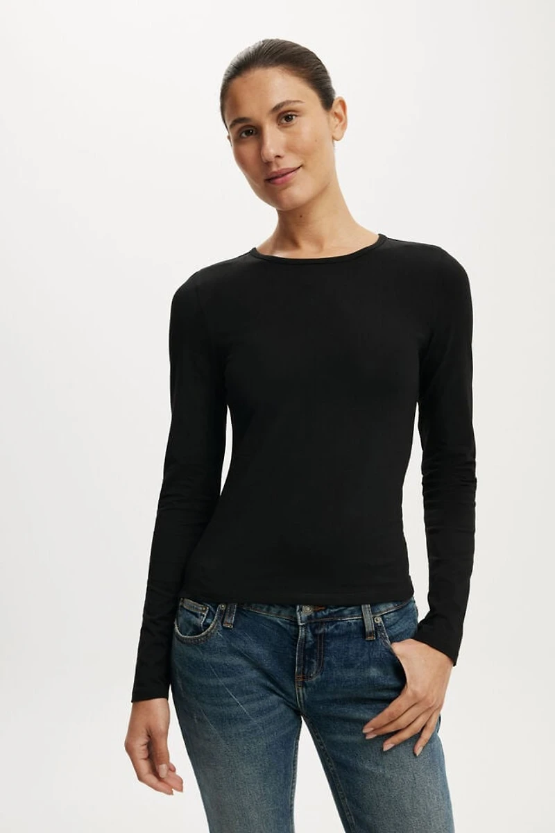 Soft. Smooth. Stretchy. Our softest ever modal tops are here. The everyday fave All Day Crew Long Sleeve is your wardrobe MVP