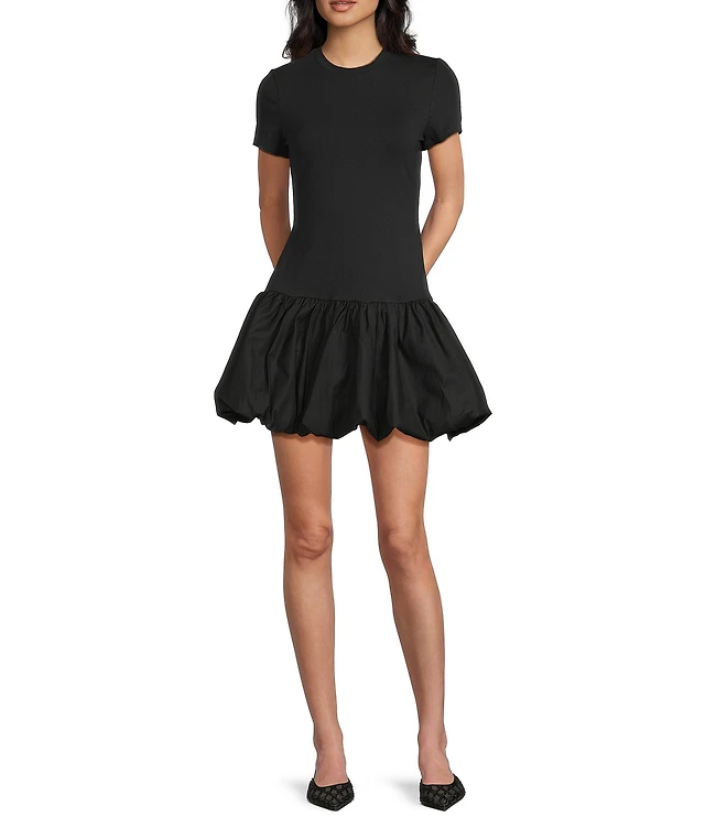 Evolutionary Jersey Woven Short Sleeve Drop Waist Bubble Dress