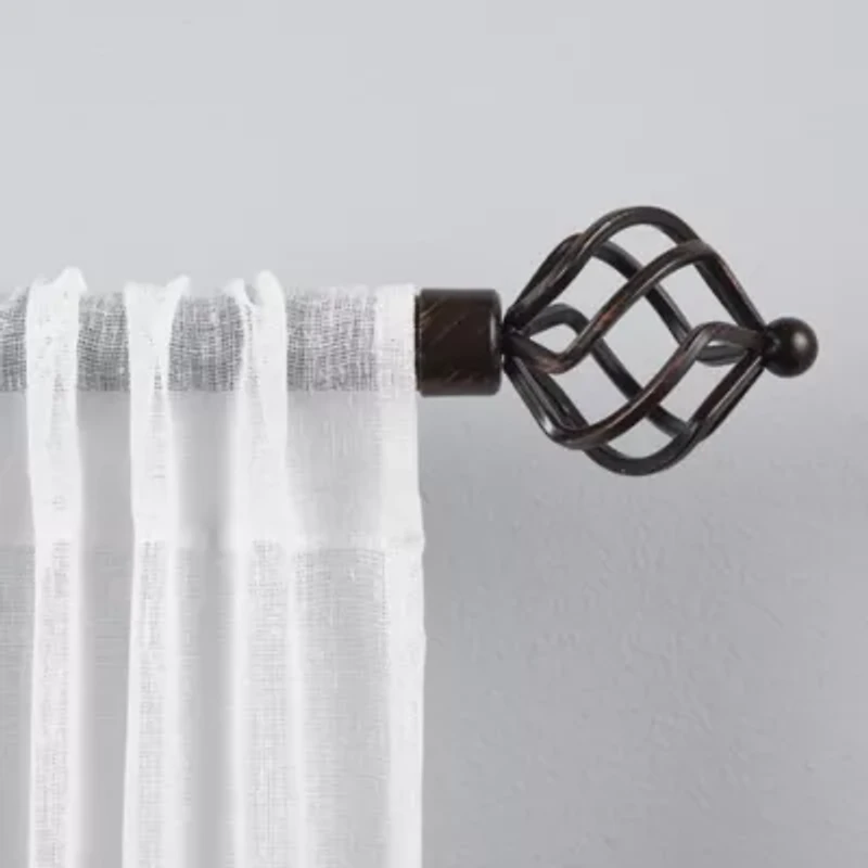 The Torch decorative curtain rod and finial set has an open, airy design with a twisted iron strand sphere shape finials. This set will provide a visually balanced appearance for your window treatments. The 2.6" diameter x 3.2" long finials will insure that your window curtain panels will remain securely on the rod. The 1" diameter iron adjustable curtain rod is designed to fit a wide range of window widths, and has a sturdy 25 lb. capacity that will support flowing sheers to thermal blackout panels. The 3.5" fixed depth projection bracket provides a gracious amount of space for fabrics to drape perfectly. Accommodates window curtain panels and drapes that are designed with various tops, including: rod pocket, pinch pleat, clip rings, grommets, tab top, or hidden back tab top. Provides an attractive accent to every window treatment in your living room, bed room, bathroom, kitchen, and kids room. Installs easily with included hardware and installation instructions. Sturdy, easy clean, no fuss, wipe clean finish will last for lifetime. This window curtain rod and finial set will add the perfect finish accent to any window treatment and adds a refined style to your home decor.