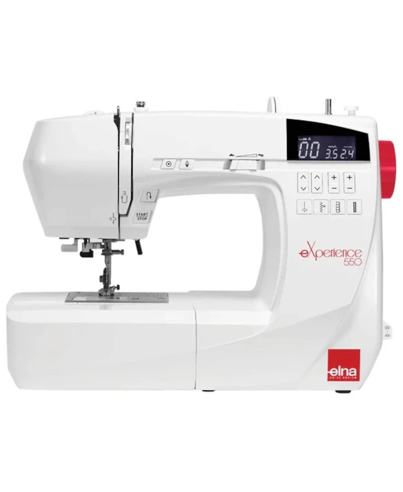 The Elna eXperience 550 is equipped with features that improve your sewing efficiencies, such as a glide-in stitch reference chart displaying 50 stitches, built-in needle threader, retractable feed dog, extra-high presser foot lift, extension table, one-touch buttons, Lcd screen, and much more!