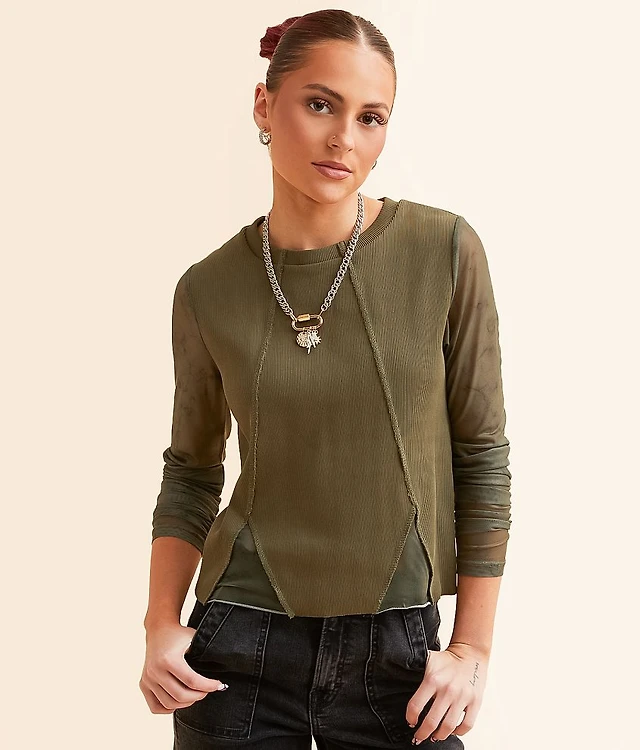 Women's Fine Gauge Exposed Seam V-Neck Top