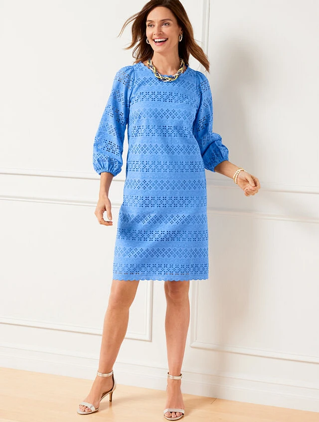 London Times Petite Cotton Eyelet Puff-Sleeve Dress