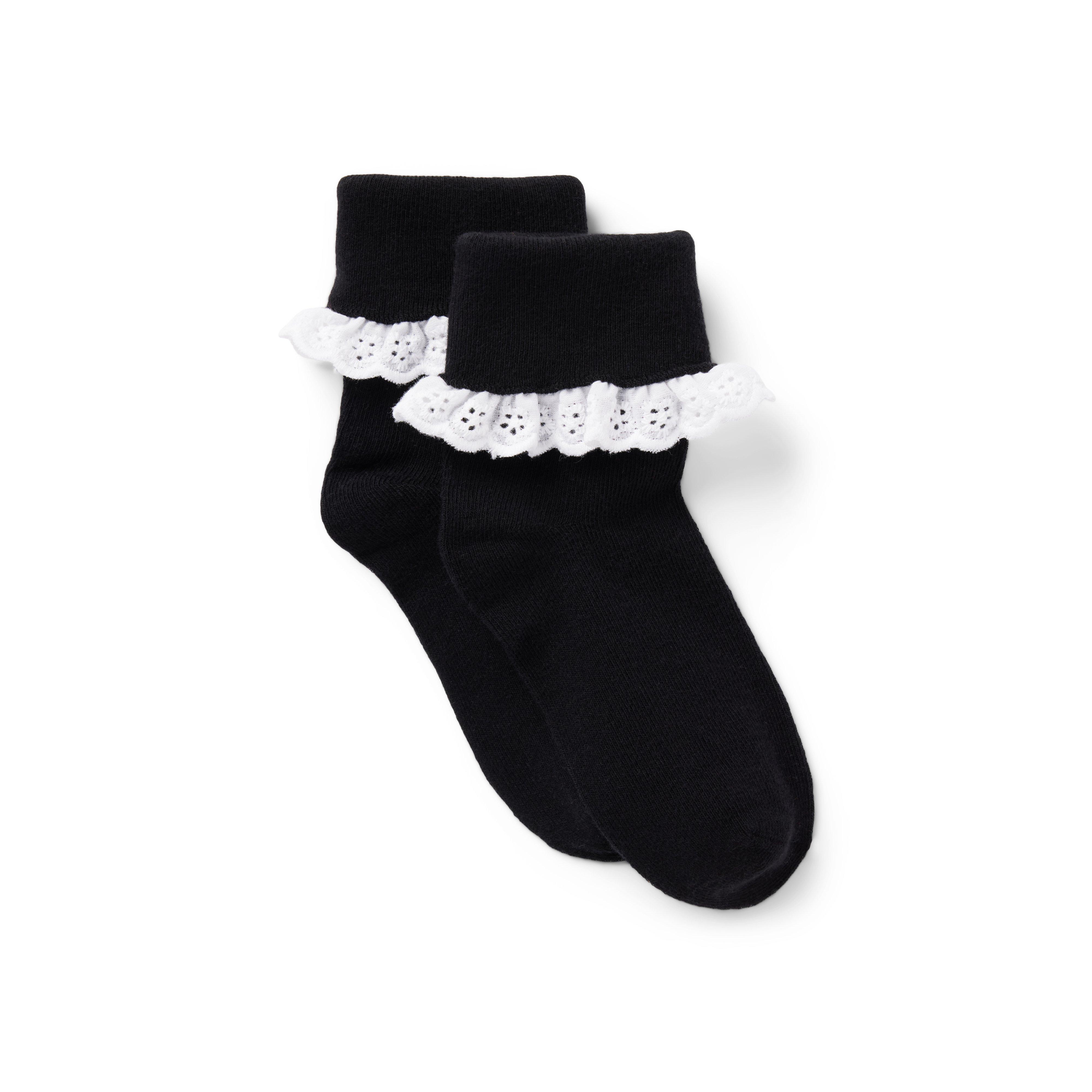 Our socks with eyelet ruffle trim will keep their look put together, right down to their toes. 67% Cotton/27% Nylon/4% Spandex/1% Rubber/1% Other Fiber Textured Grips (Sizes Up To 18-24M) Machine Washable; Imported