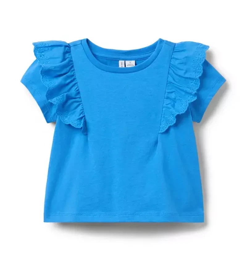 A wear-with-everything favorite, designed in soft cotton jersey. Our top features ruffle details and embroidered floral eyelet trim. 100% Cotton Jersey Short Sleeve Machine Washable; Imported
