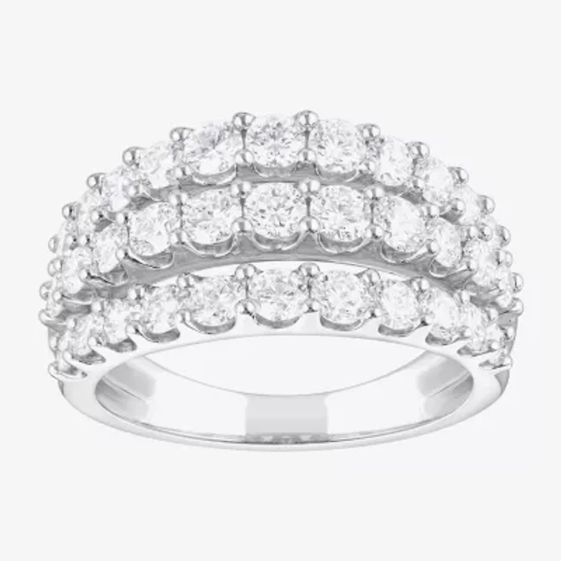 This women's cocktail ring will make a dazzling style statement thanks to its 3-band design set with 2 carats of brilliant Lab Grown Diamonds in round cuts.