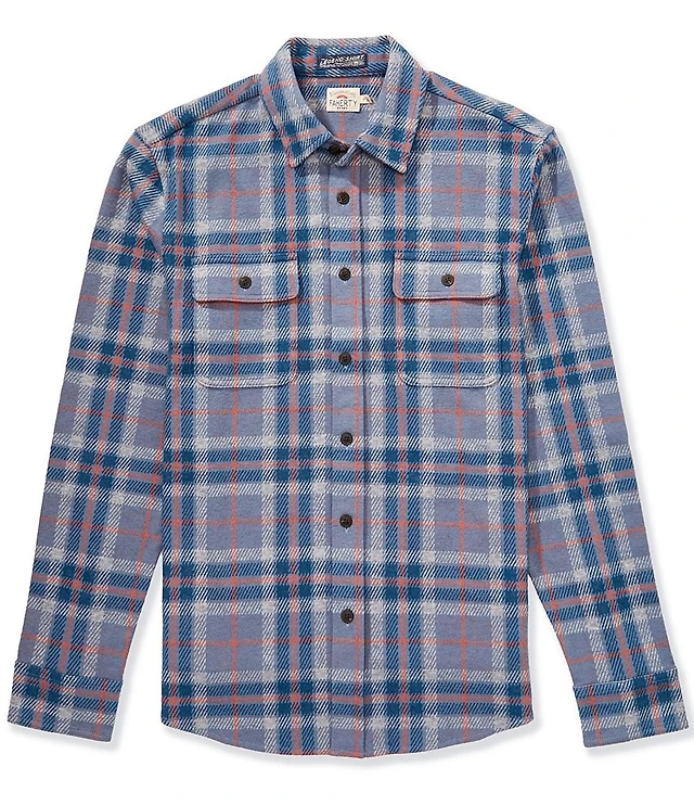 Faherty Legend Plaid Print Knit Spread Collar Long Sleeve Button Front Shirt