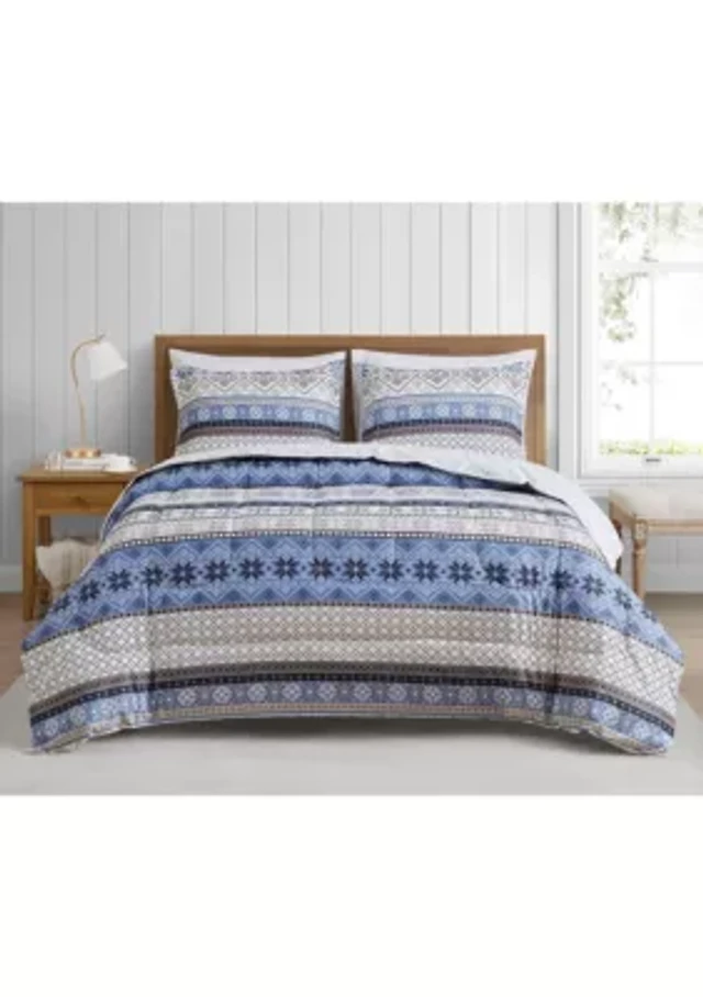Fair Isle Blue Microfiber Comforter Set