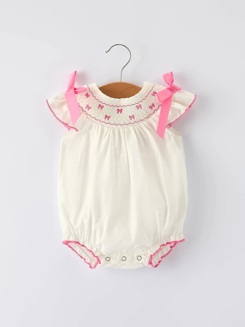 This charming fall white baby romper features delicate pink bow embroidery, adding a sweet touch to your little one’s wardrobe. Crafted for comfort and style, it’s perfect for keeping your baby cozy during cooler days while looking effortlessly adorable. Its soft fabric ensures gentle wear on sensitive skin, making it an ideal choice for everyday use or special autumn outings. Elevate your baby’s seasonal attire with this delightful romper that combines practicality with a subtle, elegant design.