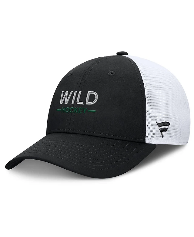 Fanatics Men's Black/White Minnesota Wild Authentic Pro Rink Lockup Adjustable Trucker Hat