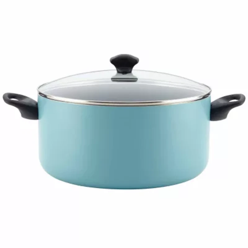 Make large-batch stocks, soups, stews, pastas and more with less worry about cleanup, with the Farberware Dishwasher Safe Nonstick Aluminum 10.5-Quart Stockpot with Lid. Farberware has been trusted by families for over 100 years, and this dishwasher-safe stockpot continues that tradition for a new generation with easy cleanup after every use. The cookware is constructed from heavy-duty aluminum that quickly and evenly heats to help reduce hot spots that can burn foods. The 10.5-quart stockpot is a great size for cooking a big batch of your family's favorite stew, chili or becoming your go to lobster pot for special occasions. The stockpot interior features long-lasting top-quality nonstick for effortless food release and easy cleanup. The sturdy handles provide a confident grip, and the shatter-resistant glass lid allows foods to be monitored without losing heat or moisture. Oven safe to 350 F, this colorful nonstick cookware piece compliments other items in the Farberware collection, and with dishwasher-safe convenience make cooking with this stockpot easy. Every home kitchen needs a great stockpot for large-batch cooking, and with the colorful, capable Farberware Dishwasher Safe Nonstick Aluminum 10.5-Quart Stockpot, easy cleaning is built right in.