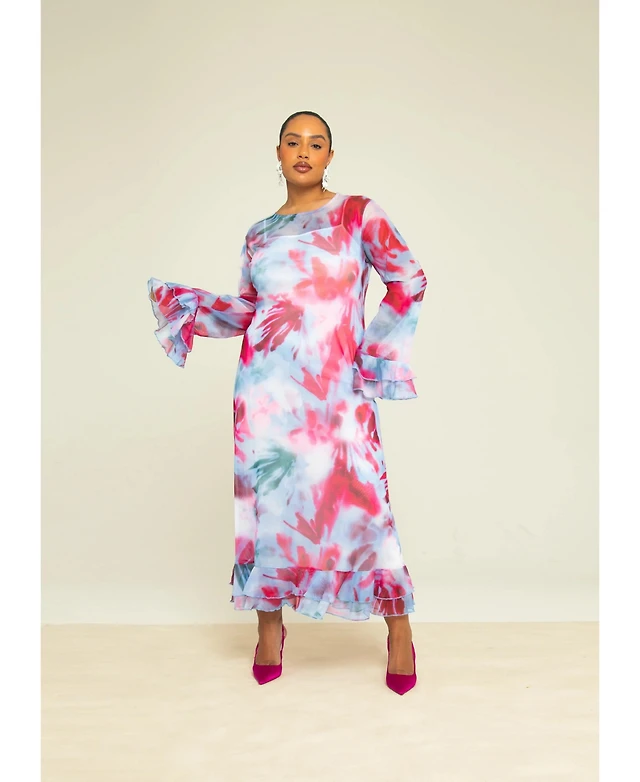 Fashion-szn Curve Women's Blurred Floral Mesh Maxi Dress