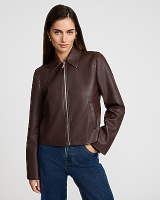 Faux Leather Zip Front Jacket