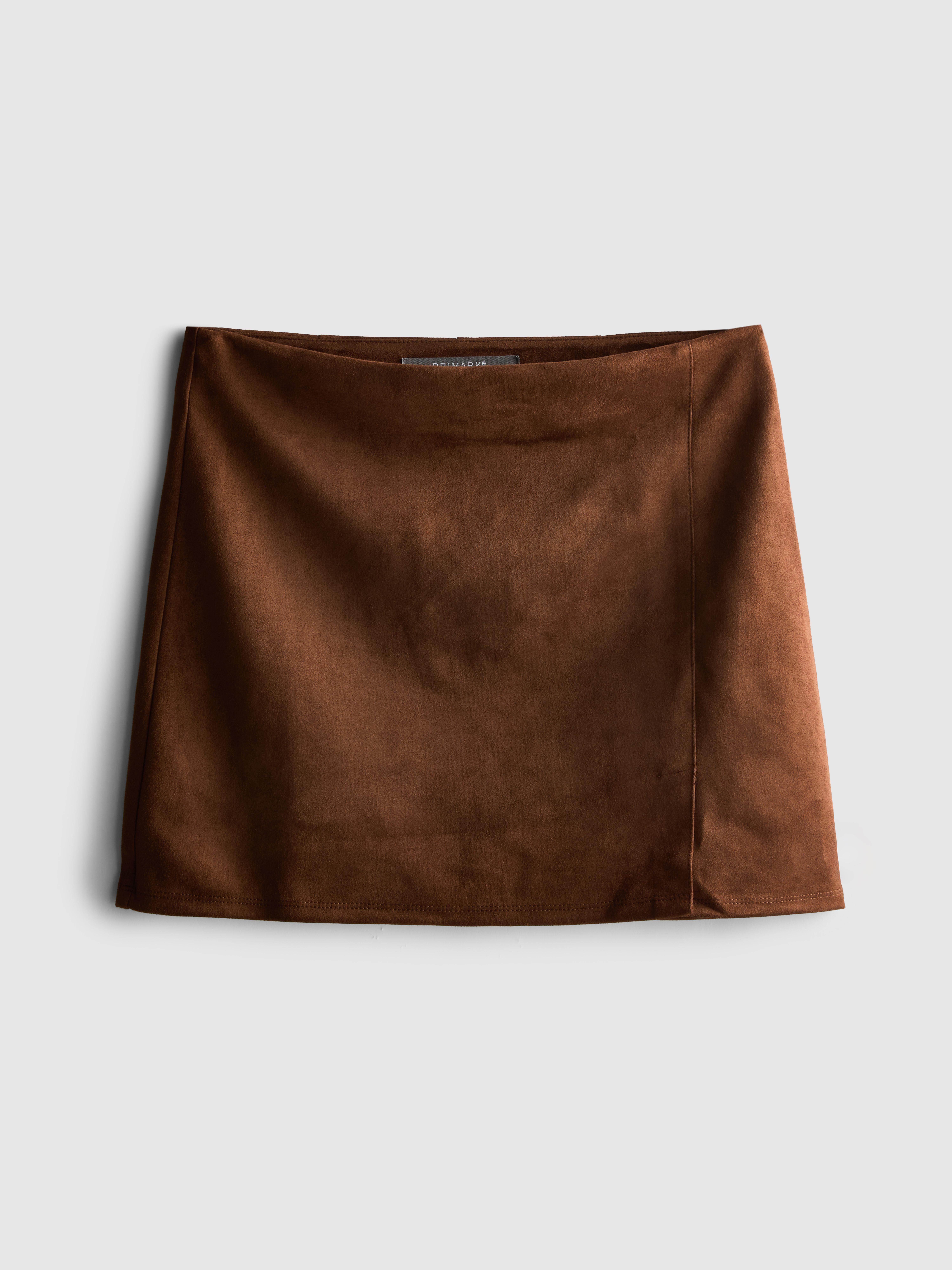 In an A-line cut, this mini skirt comes in a faux suede finish