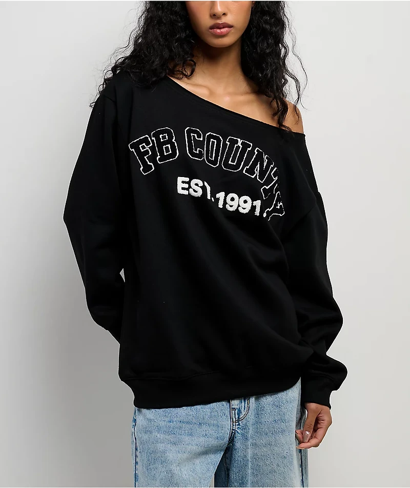 FB County Off Shoulder Black Crewneck Sweatshirt