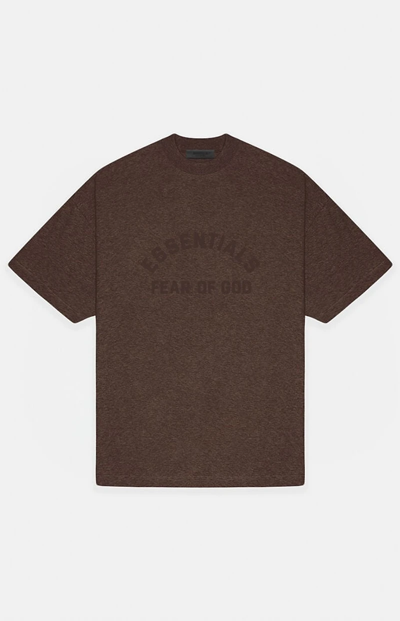 The Fear of God ESSENTIALS Heather Wood Heavy T-Shirt is made from heavyweight cotton for additional weight and structure and features a relaxed fit, short sleeves with dropped shoulders that give way to a more oversized look, a soft-touch rubberized logo on the front, and a rubber brand label at the upper back.