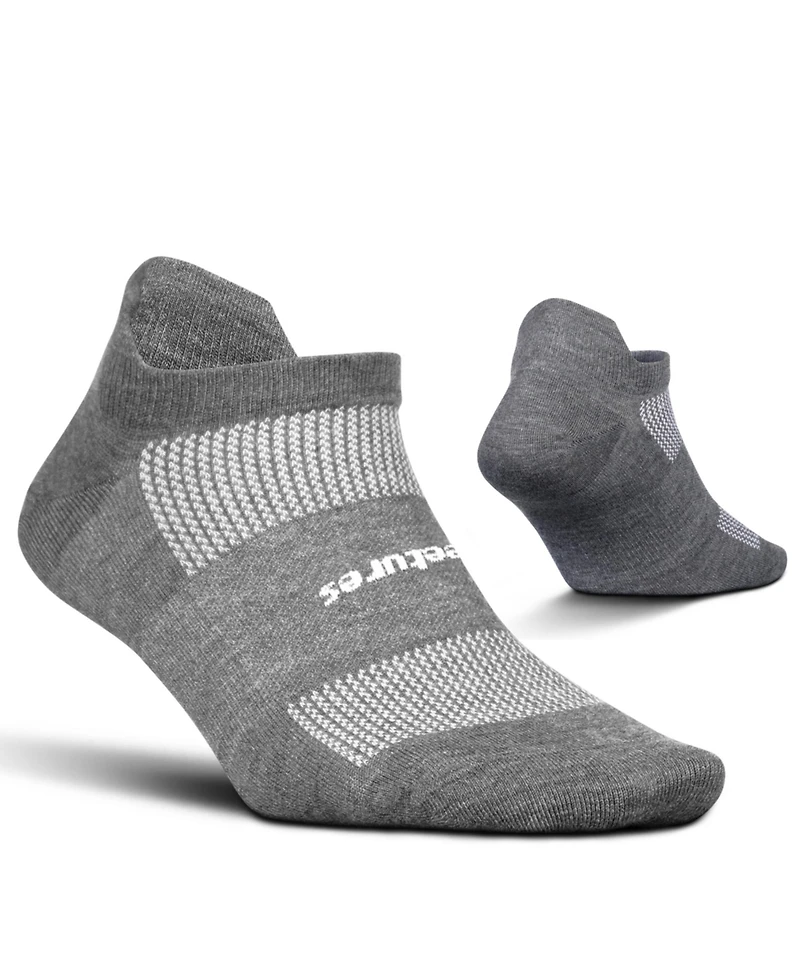 The sock that changed everything. This is the sock that made Feetures famous because of its snug, supportive fit. They're great for anyone not sure about wearing left and right socks or for people looking to try Feetures for the first time. These socks are engineered with Targeted Compression, a snug band around the arch of the foot to provide additional support and comfort. Plus our Max Cushion adds additional protection. These no-slip socks rest below the top of the shoe, which is our most popular and versatile silhouette. These no-show ankle socks are designed with a heel tab that provides comfort and blister protection from friction caused at the back of the shoe. High Performance cushion socks are superior to conventional socks because of their seamless toe, moisture-wicking fibers and arch band support. Dedicated to helping people achieve their personal best and pursue an active lifestyle, Feetures designs high-quality socks that provide comfort and support recovery.