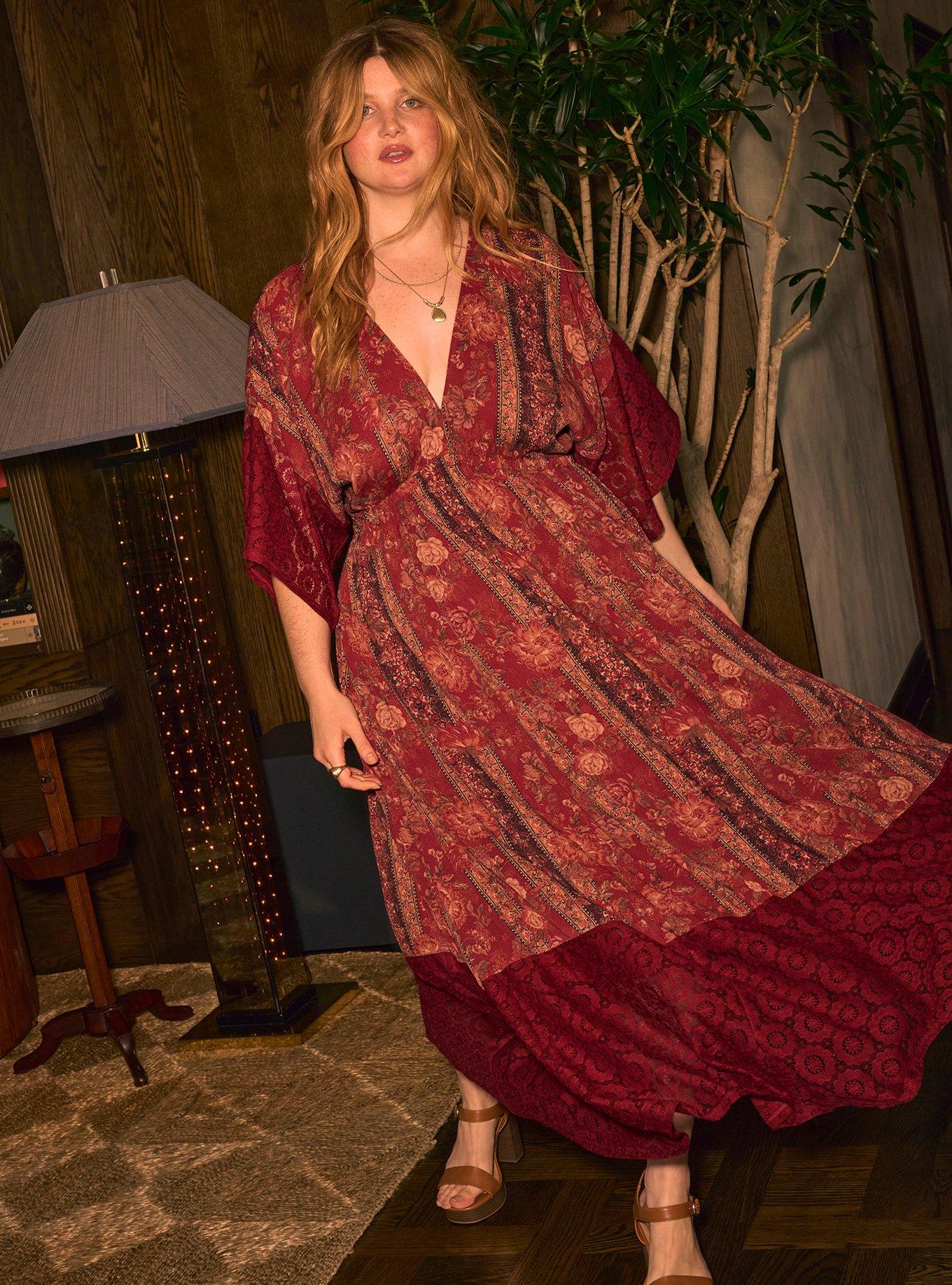 FIT Measures 56'' from shoulder (size 2). MATERIALS + CARE Crinkle gauze woven fabric. 100% rayon. Machine wash cold. Line dry. Imported. DETAILS V-shaped neckline. Short sleeves with crochet trim. Tie back with tassels. Lace skirt trim. FESTI Beautiful, evocative pieces for free spirits and the wild at heart. All dreamed up to tell your story. Your next adventure starts here.