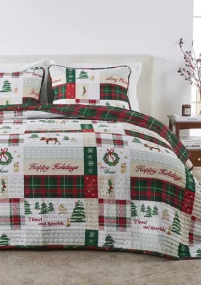 Festive Holiday Reversible Microfiber Quilt Set with Shams