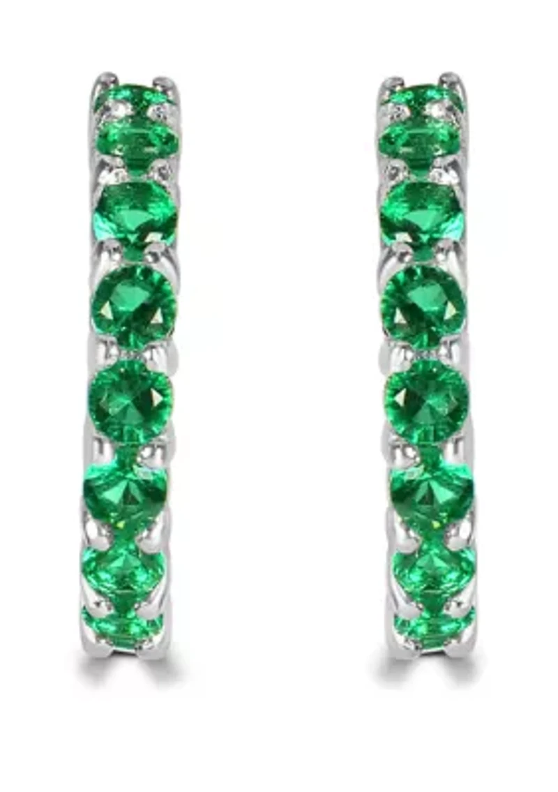 Fine Silver Plated Green CZ Pave Hoops