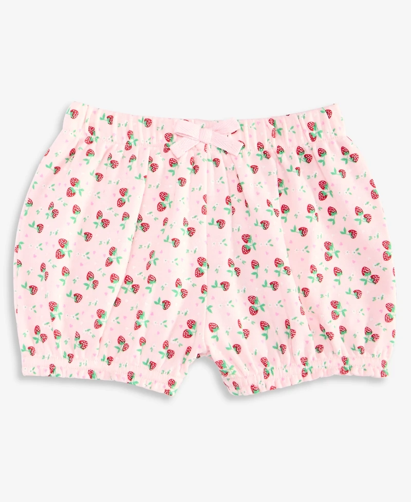 A sweet allover strawberry print brightens her comfy and cute looks with these pull-on shorts from First Impressions.