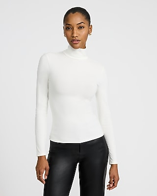 A must-have for lovers of layering, this ribbed tee is complete with long sleeves and a mock neckline perfect for solo styling or as a base piece in any look.