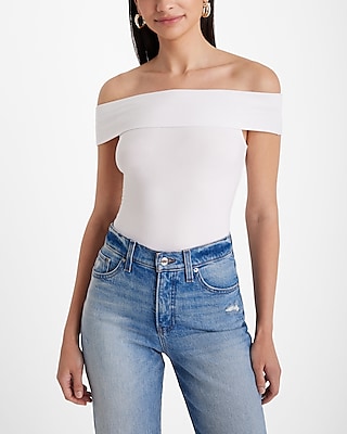 A simple yet chic top that features an off the shoulder overlay neckline and a fitted, ribbed fabric.