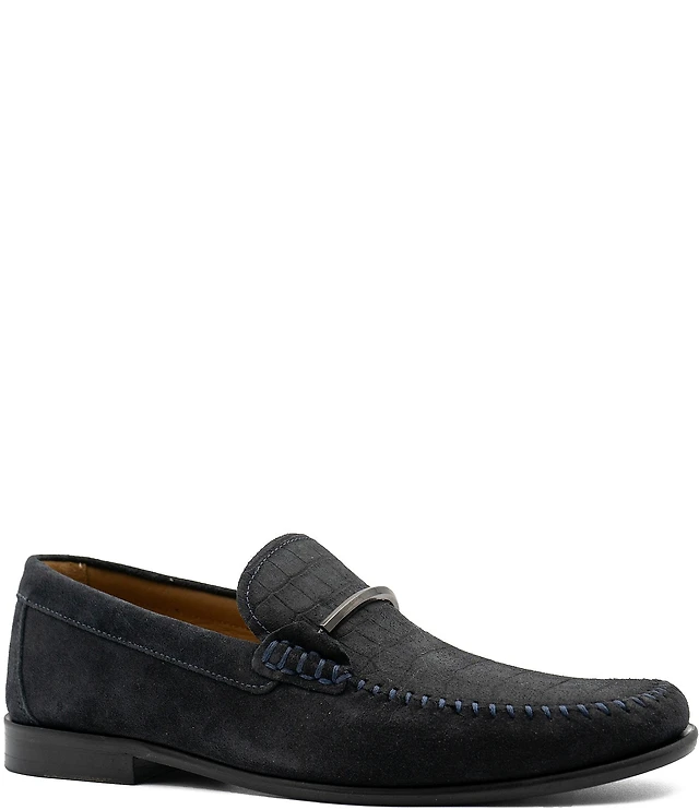 Flag LTD. Men's Vincent Bit Croco Embossed Suede Slip On Loafers