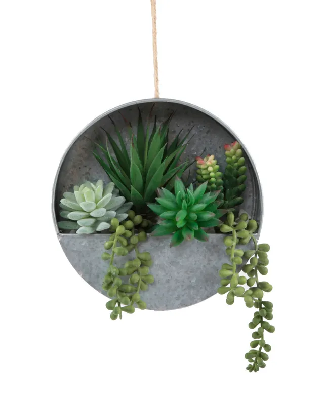 Flora Bunda Succulent in Hanging Galvanized Tin Wall Planter, 8"