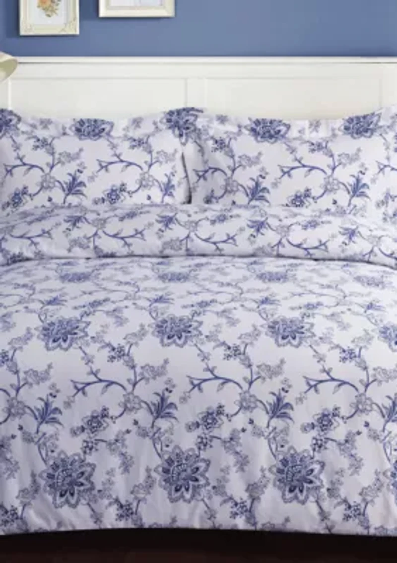 Update your bedroom with this sophisticated floral printed flannel duvet cover set by Tribeca Living. Made of brushed 170-gsm cotton, the set features a stylish multicolor floral pattern on white background for a distinctive look. Set includes one oversized duvet cover and two shams. Includes internal corner ties on the duvet cover that can secure your comforter through its corner loops and prevent shifting. Queen duvet set includes: 1 Duvet Cover: 92 in W x 96 in L 2 Shams: 20 in W x 26 in L King duvet set includes: 1 Duvet Cover: 110 in W x 96 in L 2 Shams: 20 in W x 36 in L Floral pattern Imported Material & Care Cotton Machine washable