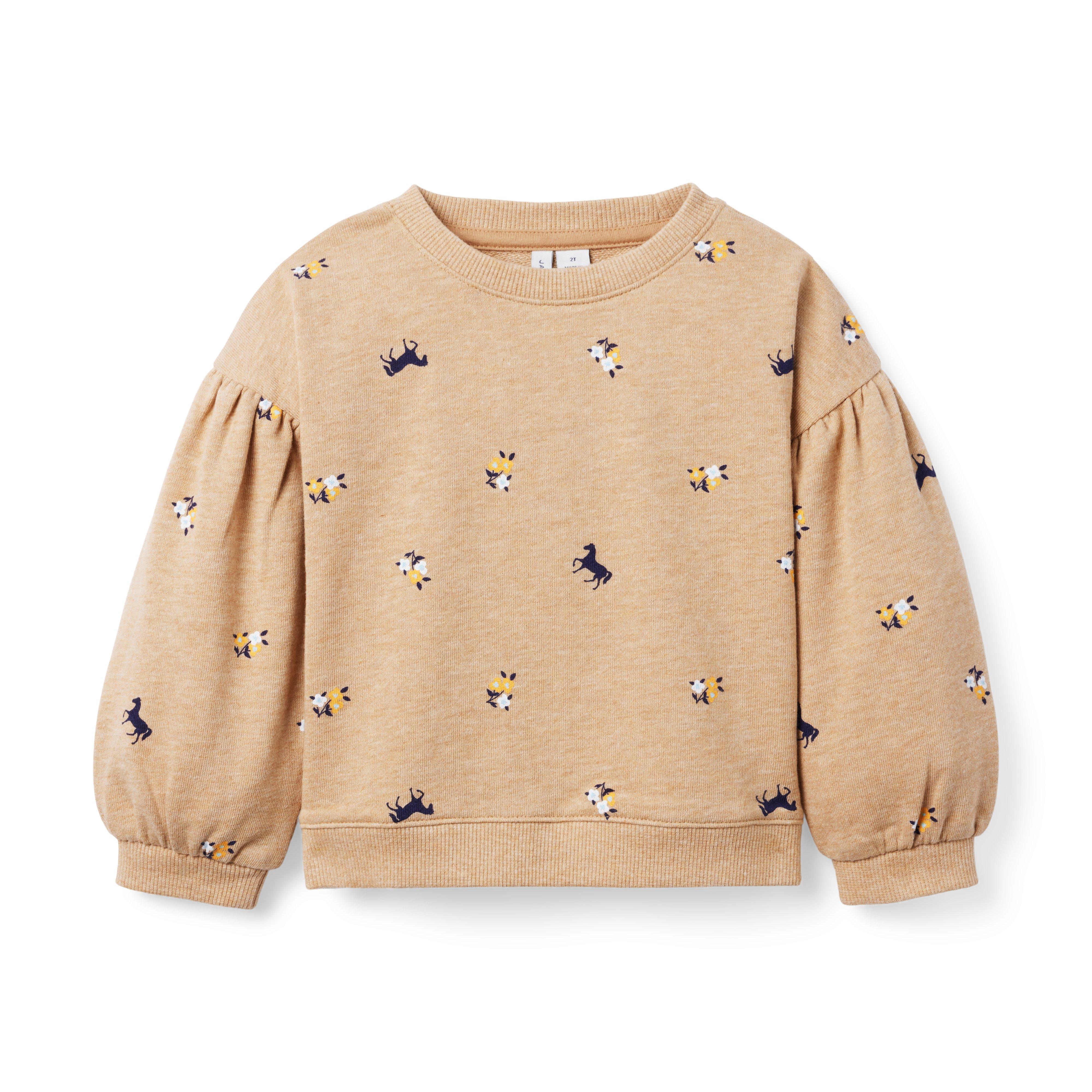 Ride through the day in this French terry favorite with a floral horse print and dropped puff sleeves for added flair. 61% Cotton/39% Polyester French Terry Long Sleeve Machine Washable; Imported