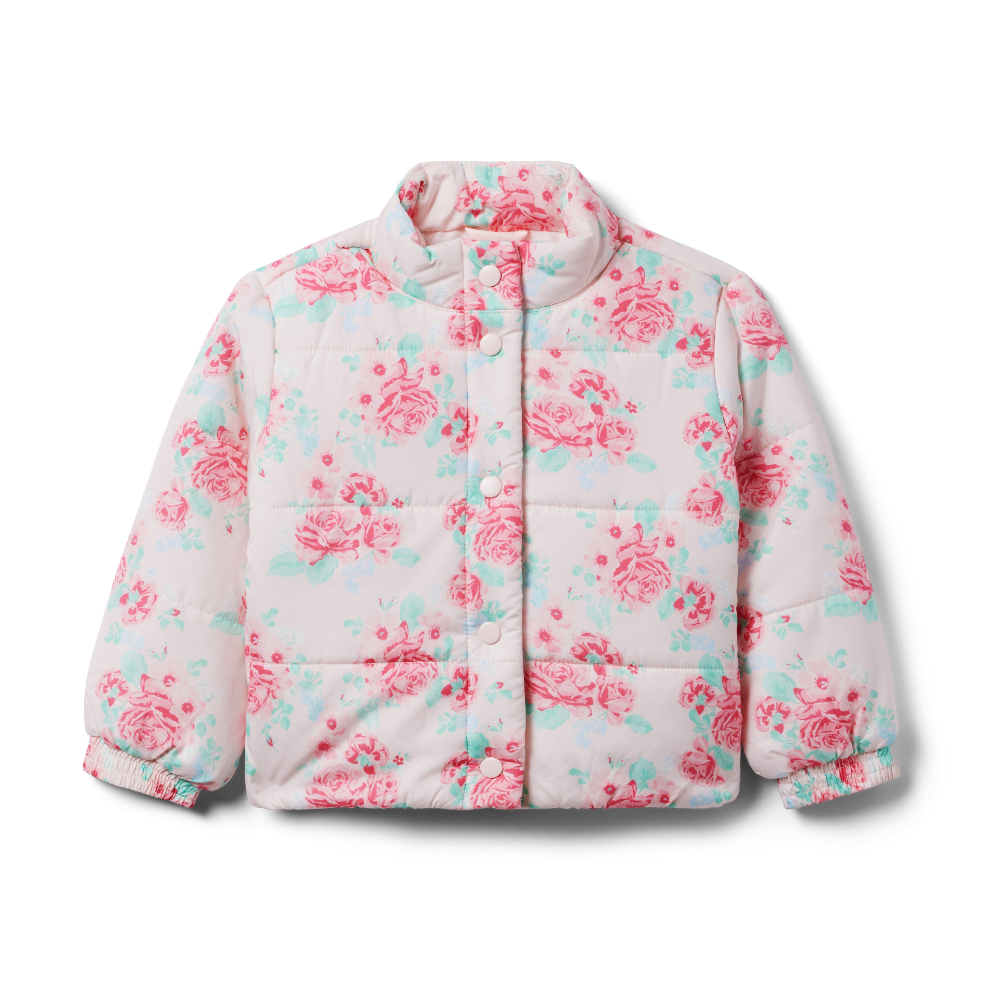 Layer up in cozy florals. Our warm puffer jacket is a joy to wear, with an easy snap front, mock neck and elastic cuffs. 100% Polyester Fully Lined Snap Front Now Including Tween Sizes Up To 18 Online Exclusive Machine Washable; Imported