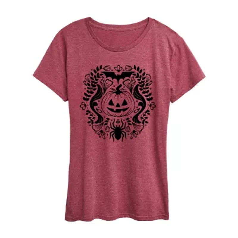 Floral Pumpkin Halloween Womens Crew Neck Short Sleeve Regular Fit Graphic T-Shirt