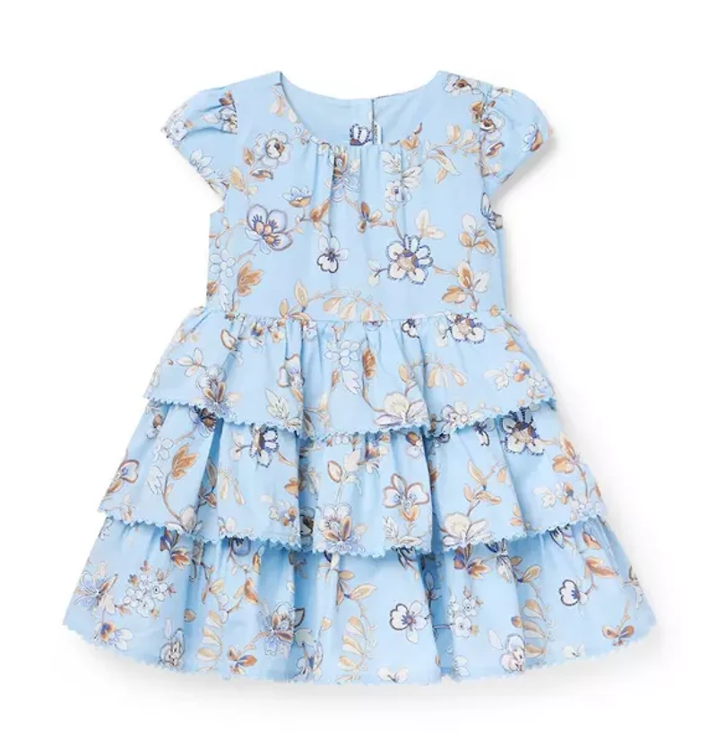 It’s a season of style in our pure cotton dress. Designed with allover florals, tiered ruffles and crochet lace trim. 100% Cotton Batiste; Lining: 100% Cotton Fully Lined Short Sleeve Button Back Bloomer Included (Sizes Up To 18-24M) Machine Washable; Imported