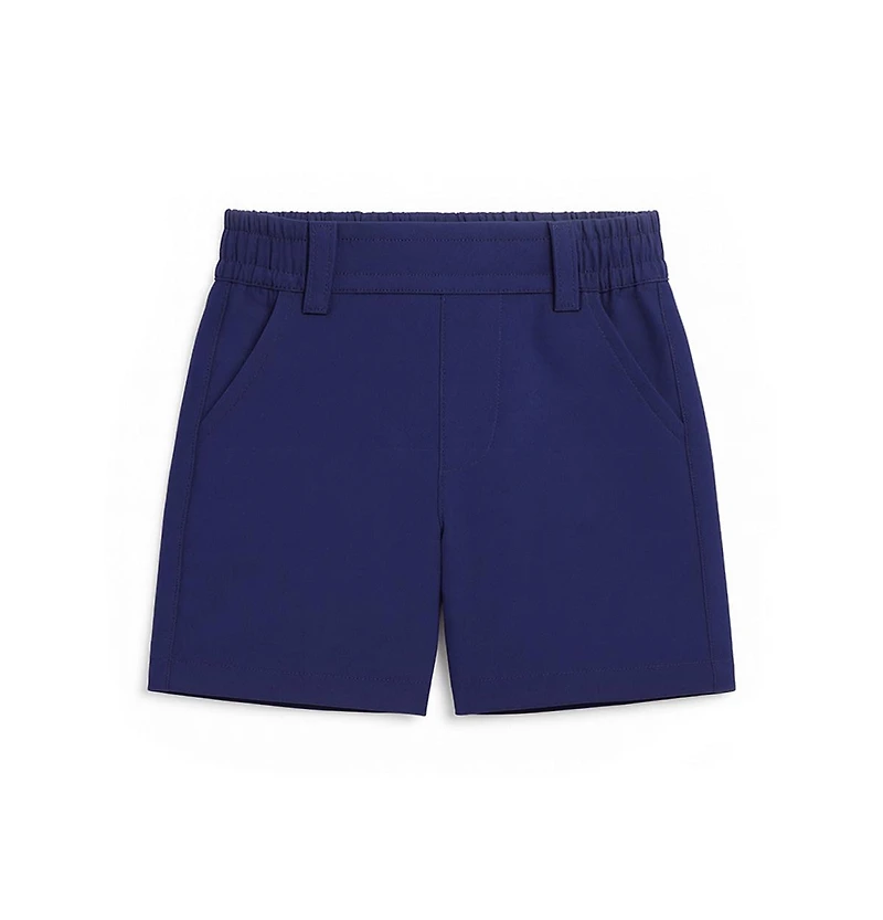 Sporty, lightweight, and made for movement, these shorts are crafted from navy Supplex with comfortable stretch for all-day wear. Designed with front slant pockets, belt loops, and a neat fake fly, they offer a polished look with the ease of a pull-on style.a back elastic waistband ensures a comfortable fit for active days, making them perfect for vacation outings, playtime, and warm-weather adventures.