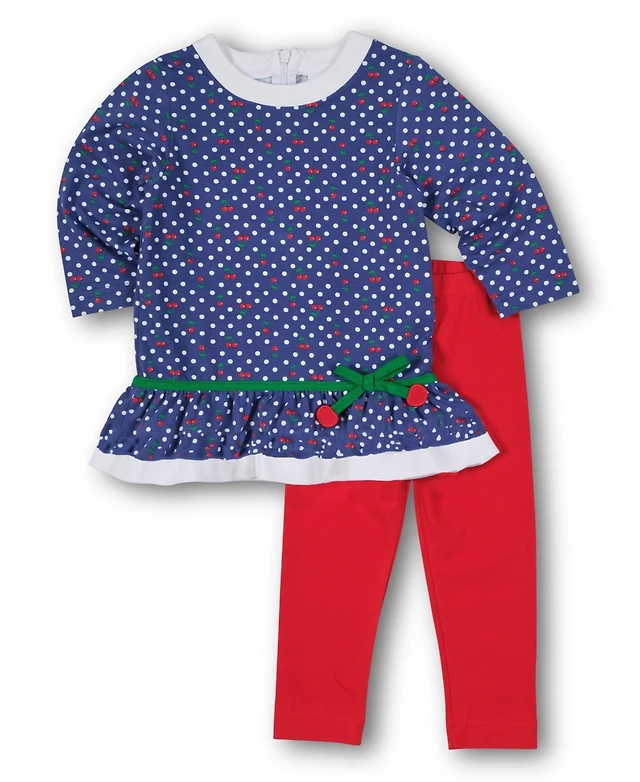 Florence Eiseman Toddler Girls Polka Dot Cherry Knit Tunic Set