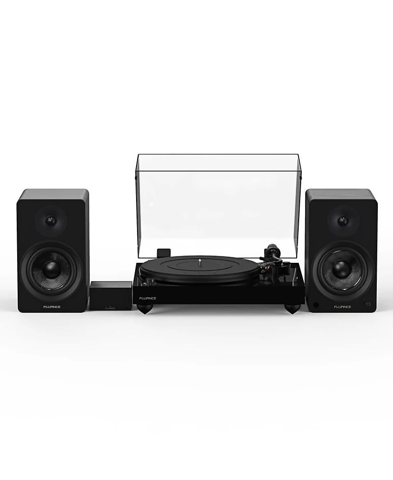 Everything you need for the ultimate music experience in one convenient package. Hear breathtaking stereo sound with the Fluance Reference High Fidelity Turntable paired with the Riaa Equalized PA10 Phono Preamp connected to the powerful Ai41 Powered 5" Stereo Bookshelf Speakers for a pure analog listening experience.What's Included: RT82 Turntable, Dust Cover + Hinges, Bubble Level, Headshell with Ortofon Om 10 Cartridge, Counterweight, Metal Platter with Belt, Rubber Platter Mat, 5ft 100-240V (50/60Hz) Ac Power Adapter, 2x 3ft 90pF Rca Cable, 3ft Ground Wire, 45 Adaptor, Motor Pulley Cap, User Manual, PA10 Unit, Power Adapter, Ai41 Powered Bookshelf Speakers (pair), Remote Control, 2x Aaa Batteries, 6ft Power Cable, 8ft 18 Gauge Speaker Wire, Quick Start Guide, Lifetime Customer Support, 2 Year Manufacturer's Warranty